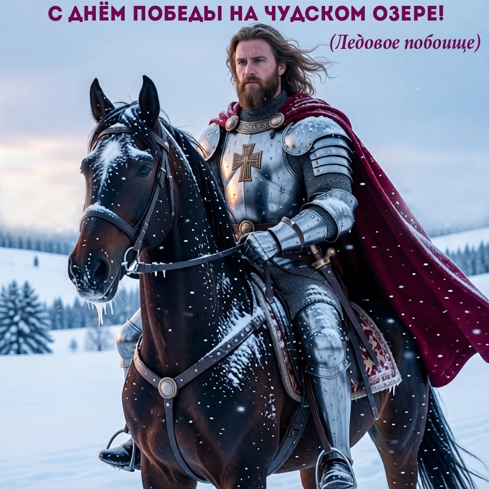В память о победе в Псковской области установлен 30-метровый монумент «Ледовое побоище» весом 163 тонны. Поздравить интересующихся историей или просто вспомнить героическое прошлое можно с помощью одной из наших открыток.