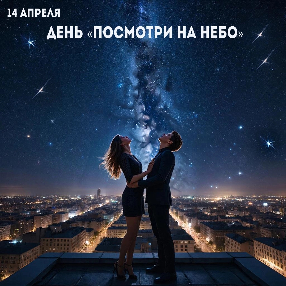 14 апреля во всём мире отмечают День «Посмотри на небо». Праздник учреждён в честь Джека Бордена — журналиста из Бостона, который в возрасте почти 50 лет, лежа на лугу, вдруг увидел небо «как будто впервые в жизни» и оставил работу, чтобы учить других смотреть вверх. Главной целью этого необычного дня принято считать простое желание расширить горизонты и научиться ценить красоту природы.