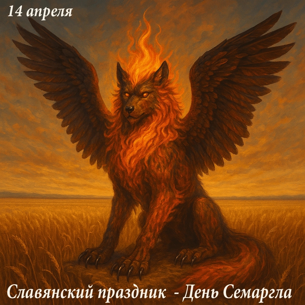 14 апреля славяне традиционно отмечают день Семаргла — огненного бога, хранителя домашнего очага и посевов. Согласно древним верованиям, Семаргл был посредником между небом и землёй: он не пропускал зло в мир людей, охранял семена и урожай.