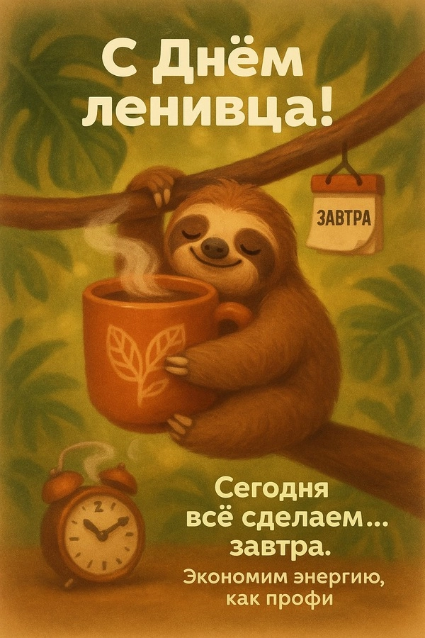 Организаторы праздника таким образом привлекают внимание к тому, что на Земле остается все меньше лесов, в которых обитают эти милые животные. Если вы хотите напомнить об этой проблеме своим друзьям и близким, или пожелать им ленивого понедельника — отправьте одну из наших открыток.
