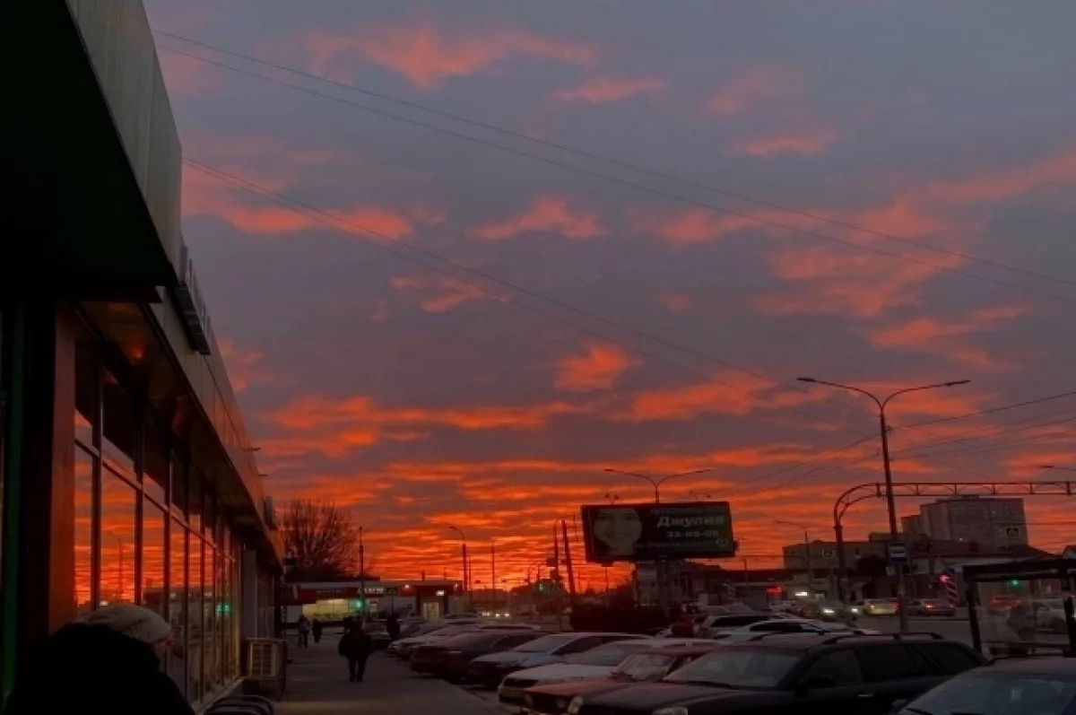 Горожане спешили запечатлеть красоту зимнего вечера на камеры мобильных телефонов. Снимки необычного заката появились в соцсетях и пабликах.