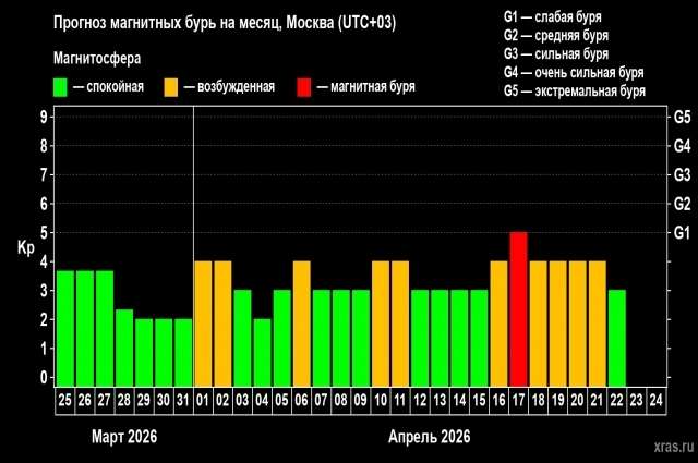 Небольшое возмущение — до четырех баллов, ожидается 1 и 2 апреля. Далее аналогичная ситуация повторится после трех дней тишины шестого числа, после еще одного трехдневного перерыва 10 и 11 апреля.