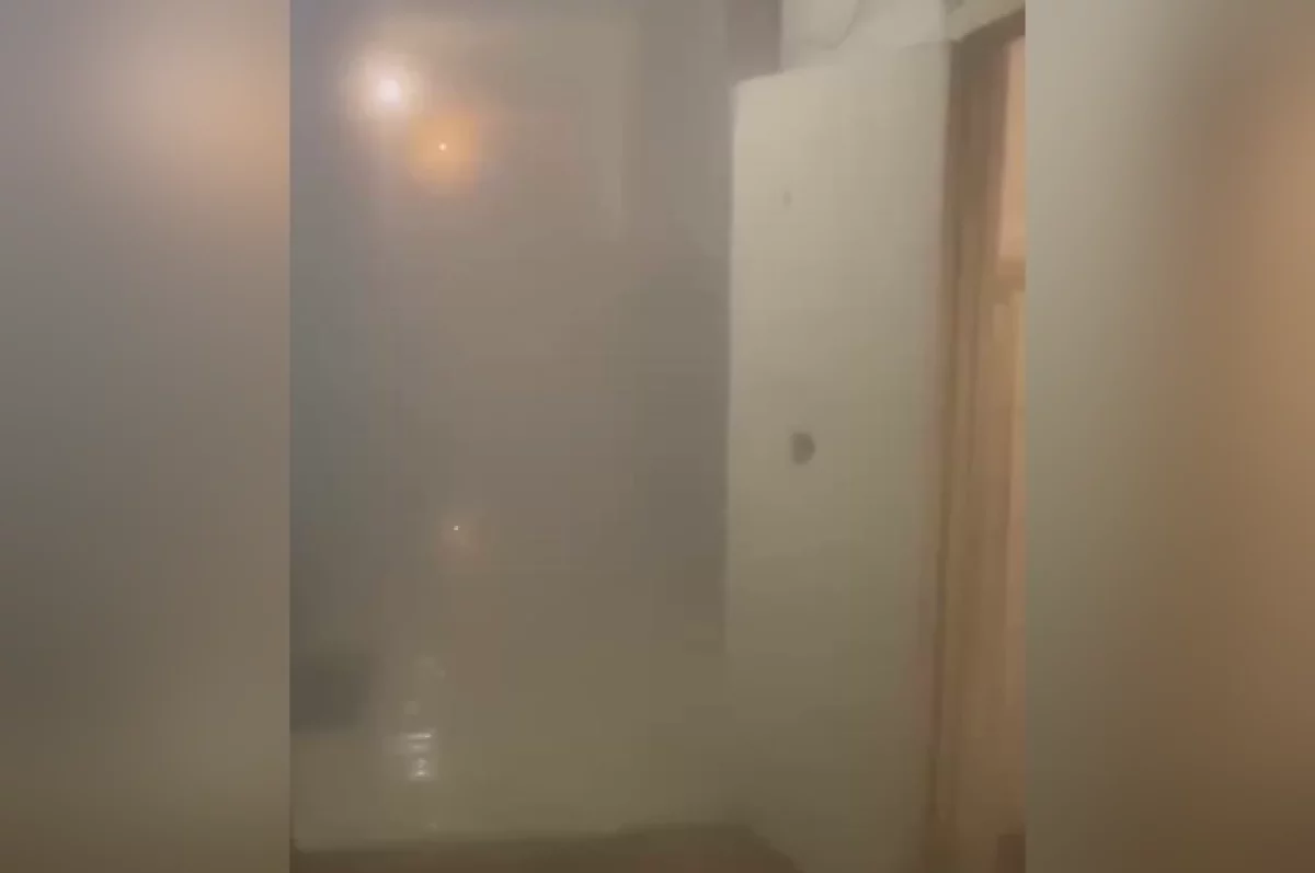 Здесь несколько раз фиксировались порывы трубопроводов. И в настоящее время пар стоит во всех помещениях.