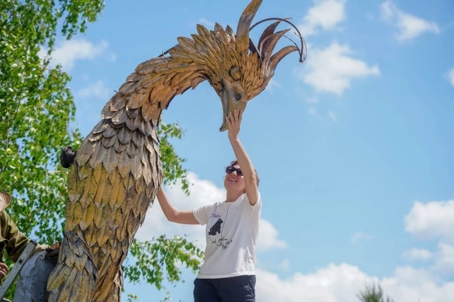 Перед открытием мероприятия экскурсию по парку провел для актрисы его директор Андрей Еркин. Она не упустила возможность и загадала желание у недавно установленного здесь нового талисмана — Жар-птицы.