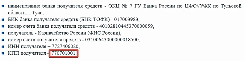 В распоряжении о переводе средств в этой строке теперь должны быть цифры 770701001.