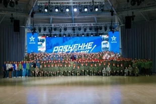 Около 400 школьников тренируют синхронность и четкость строевого шага во время профильной смены в оборонно-спортивном лагере.