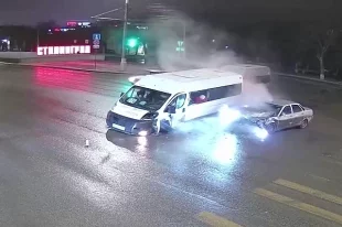 Судя по кадрам, маршрутка выворачивала на разрешающий сигнал светофора налево с улицы Бакинской, когда в нее на полной скорости врезалась «Лада»