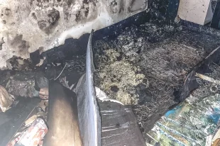 От кровати, на которой спала женщина, остались только пружины на полу. Выгорели и остальные вещи.