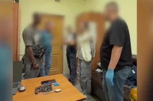 Едва мужчина открыл дверь, бойцы российского силового ведомства уложили его на пол и, заставив завести руки за спину, надели на задержанного наручники.
